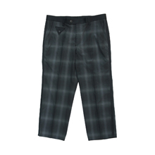 ■薄手のオンブレチェック生地を使用したクロップドパンツです。こだわりの細身のシルエットに加え、サイドのラインやバックポケットの刺繍がポイントとなっています。