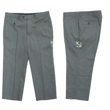 ■スーツ地を使用したクロップドパンツです。こだわりの細身のシルエットに加え、サイドに施された碇モチーフの刺繍がアクセントとなっています。シンプルなデザインで、いろいろな着こなしが楽しめるアイテムに仕上がっています。