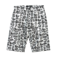 ■オリジナルの総柄生地を使用したボウリングシャツです。看板をモチーフにしたプリントを生地に施してあります。ワンウォッシュを施し風合いのある仕上がりです。