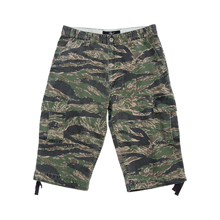 ■タイガーカモフラージュ、バックサテン生地を使用した7分丈カーゴパンツです。USED感が出やすい生地の特徴を活かしバイオストーンウォッシュを施し、着古した風合いを出しています。