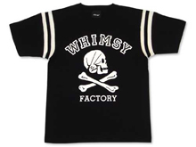 袖に切替ラインの入ったフットボールTEEになります。WHIMSYのカレッジテイストのロゴにSKULLを合わせました。プリントはラバープリントを使用しています。