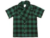■取り外し可能なストールが付いたブロックチェックのシャツになります。背中には男らしさを主張する刺繍が施されます。ストールはシャツ同様の薄い生地を用いてますのでTシャツ等との相性も良いです。