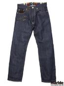 ■PROGRAMから定番のチェックデニムが入荷致しました。程良い厚さのデニム生地を使い、ポケットや裾裏に起毛したチェックネルを宛がったPROGRAMらしい雰囲気のあるアイテムです。また、履いてしまうと見えないウエスト部分内側にも同じチェック生地を貼り、こだわりが感じられます。コインポケット、ベルトループに本革スウェード、赤の×カンヌキ、ジップ等見逃せないディテールが織り込まれまた、裾をロールアップしてチェック生地を見せても穿けます。バックポケットは、やや下についている為アウターを着てもチェック生地が見えるようになっているため、コーディネイトのアクセントとして使い回しの効くアイテムに仕上がっています。