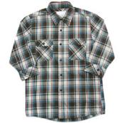 ■チェック生地を使用した7分袖のチャックシャツです。胸ポケットをバイアス使いにしてアクセントを付けています。裾には、染み込みプリントが施されています。