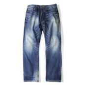 ■ブランド初期のアイテムをアップデートした渾身のデニムパンツ。レザーとパッチワークのバックポケットもポイント。