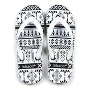 ■葉山のサンダル専門店『げんべい』に制作を依頼したビーチサンダルです。つま先が低く、かかとが高いテーパー(くさび形)ビーチの為に歩きやすく、耐久性にも定評があり夏には欠かせないアイテムです。今期のオリジナル柄を大胆にプリントしたオリジナリティ溢れるアイテムです。