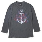 ■錨をモチーフにしたプリントカットソーです。ロープ柄をあしらいマリンテイストを感じさせる仕上がりです。また、ロープ柄で四葉のクローバーも表現されています。生地の風合いを生かす染み込みプリントを施しています。