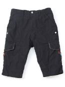 ■5分丈にし、テーパードをきかせることでスッキリとしたシルエットで作られたショーツ。サイドのポケットは革ひもで留められています。