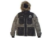 ■カラーネップ混のウール生地を使用したリアルダウンジャケットになります。フードはジップで取り外し可能で、フードのファーも取り外し可能です。ファーにはラクーンを使用しています。裏地には滑りの良いサテンストライプ生地でアクセントを付けています。コーデュロイ、ウールネップ、フェイクスウェードを切り替えた暖かみのあるデザインになります。