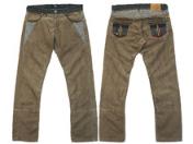 ■風合いの良い硫化染のコーデュロイを使用したパンツになります。バイオストーンウォッシュ加工を施し、色落ち、アタリ等のUSED感を出しています。ヨークやフロントポケット部分のカラーネップのウール地、フラップやバインダーのスウェード、バックポケットのブランケット地など、表情豊かなパンツになります。バックポケットの刺繍、フロントに数カ所入った小さく入る刺繍が程良いアクセントになります。裾の内側にヴィンテージストライプの生地を使用しています。裾を折り返して柄を見せて使用する等、色々な着こなしが楽しめるパンツになります。