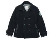 ■ウール素材と、レザーを使用したピーコートになります。背中には生地に同系色の、今季を象徴する民族調の刺繍が入ります。部分的なレザー使い、ワッペンでアクセントを付けています。シンプルなデザインながら素材の持つ魅力、高い機能性を楽しめるアイテムです。裏地はキルティング仕上げになります。裏地には滑りの良いサテンストライプ生地でアクセントを付けています。中綿には優れた保温性と吸水、吸湿性と速乾性を発揮するサーモライトを使用する事で機能的にも優れたアイテムになります。