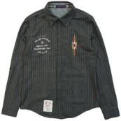 ■ウールのピンストライプ生地を使ったシャツです。胸に入った民族調の刺繍、背中のチェーン刺繍がSHAPELらしい作りになっています。洗いをかけ独特な表情に仕上げています。付属のパーツで7分袖としても着用できます。