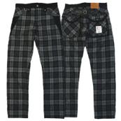 ■ウールフラノチェック生地を使用したパンツです。全体的に色身を抑えた作りになっています。サイドのコーデュロイパイピング、部分的なレザー使いでアクセントを付けています。膝まで裏地を付け穿きやすい仕上がりになっています。