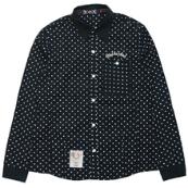 ■ドット生地を使ったクレリックシャツです。生地の表情を活かしたシンプルなデザインになっています。左胸、背中にチェーン刺繍でアクセントを付けています。付属のパーツで7分袖としても着用できます。
