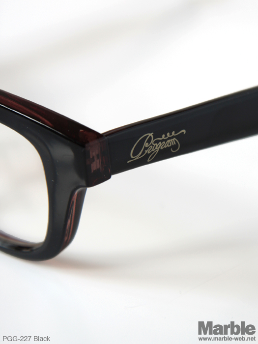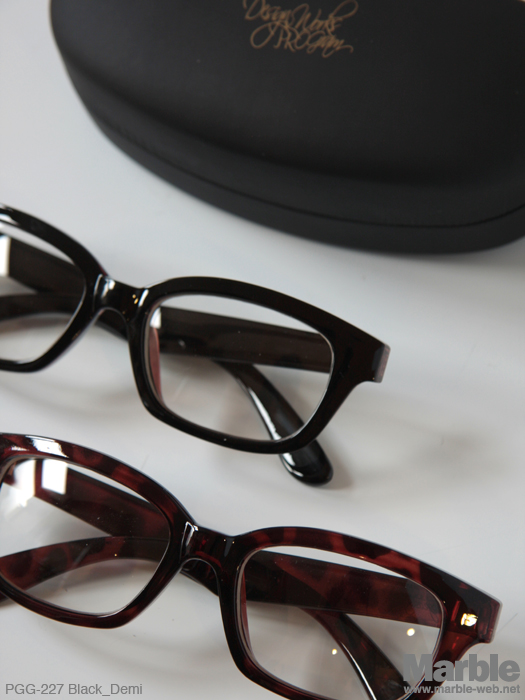 ベーシックな伊達メガネ。フレームの厚みが程良くかけ易い仕上がり。テンプル部分にPROGRAMのロゴプリントが施されている。