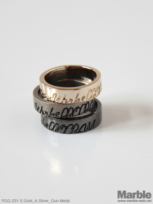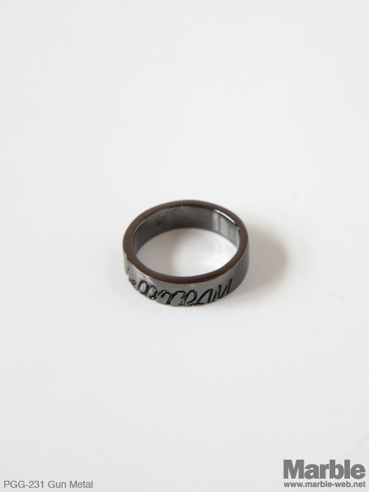 PROGRAMのロゴを彫刻したリング。ロゴを半分にしたデザインが斬新。コーディネイトのポイントに。