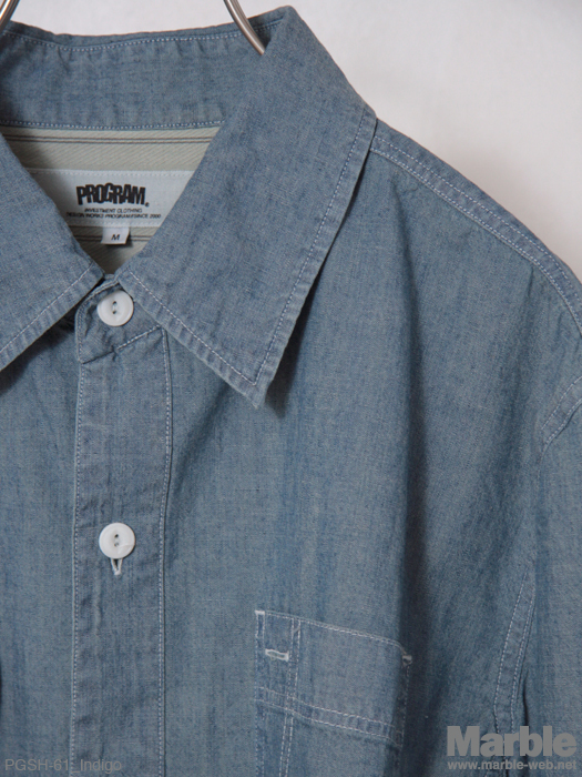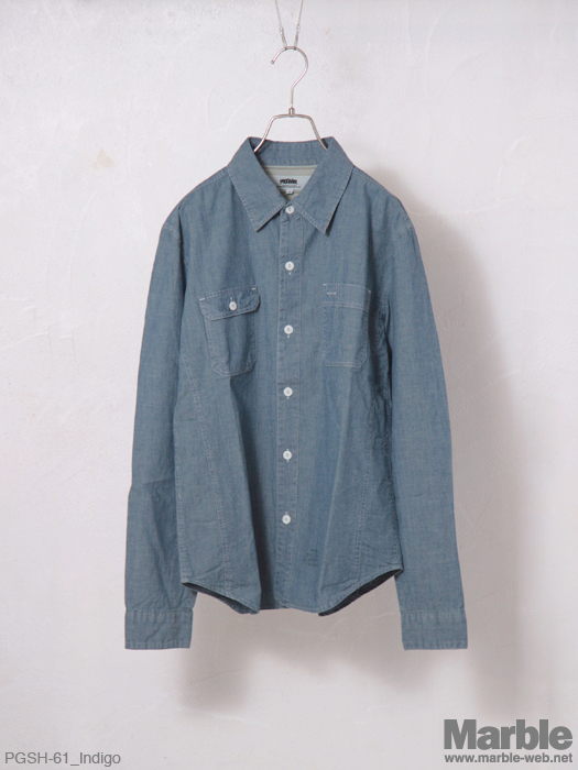 定番のシャンブレーシャツ。ベーシックなシルエットとディテールで永く愛用できる仕上がり。背ヨーク内側にボーダーのスレーキを施しさりげないポイントに。男らしく着こなしたい一着。