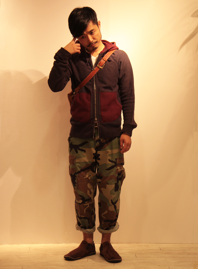 で、その流れで今日の僕の格好も撮ってもらいました。一昨年に買ったLOSTHILLSとWing&Hornsの撥水パーカー