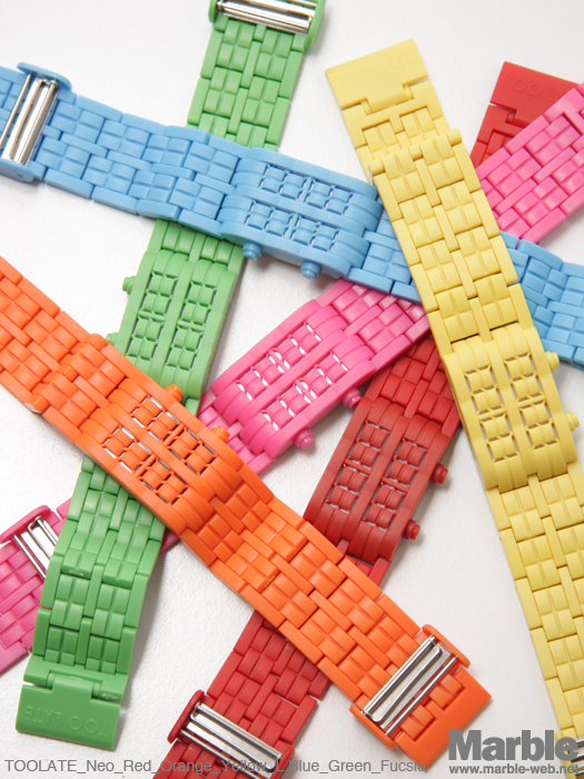 イタリア、ミラノ近郊の町ブレシカにて27歳の若手デザイナー”Ale Fogazzi”により2008年に誕生した時計ブランドTOOLATE(トゥーレイト)。2008年、ニューヨークのMOMAミュージアムストアでブレイク以来、既にその人気は世界レベルであり、最近ではKANYE WESTのブログでも紹介された事でも有名。デジタルムーブメント(LEDディスプレイ)、電池交換可。3気圧防水(生活防水)機能有り。正規代理店の一年間保証有り。