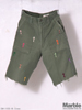 70年代以前に生産されたコットン素材のユーティリティーパンツをボディに使用したショートパンツ。施されている刺繍はデザイナーの手作業による物。ミリタリーアイテムの持つ雰囲気とハンドメイドの優しい雰囲気を併せ持った一本。